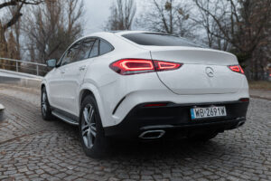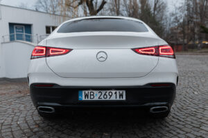 Mercedes-Benz GLE 400d 4Matic Coupe z 2021 roku to elegancki i dynamiczny SUV o sportowej sylwetce, pochodzący z Polski. Wyposażony w automatyczną 9-biegową skrzynię biegów, napęd 4Matic oraz luksusowe wnętrze wykończone skórą nappa w kolorze czarnym, zapewnia wysoki komfort jazdy. Samochód wyróżnia się efektownym lakierem MANUFAKTUR jasna biel diamentowa.